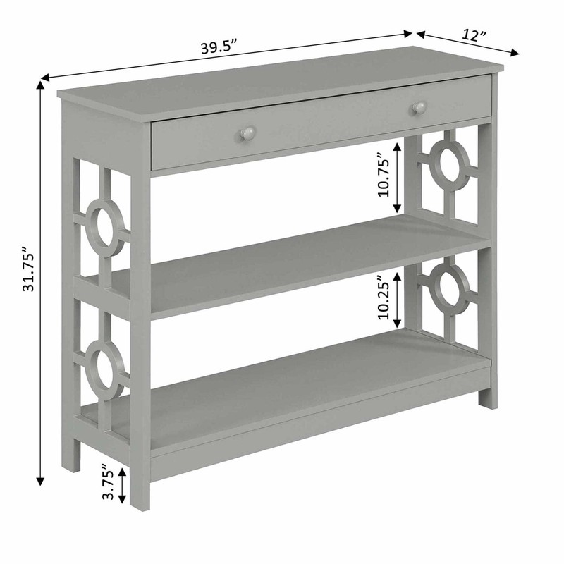 Convenience Concepts Ring 1 Drawer Console Table with Shelves, Gray