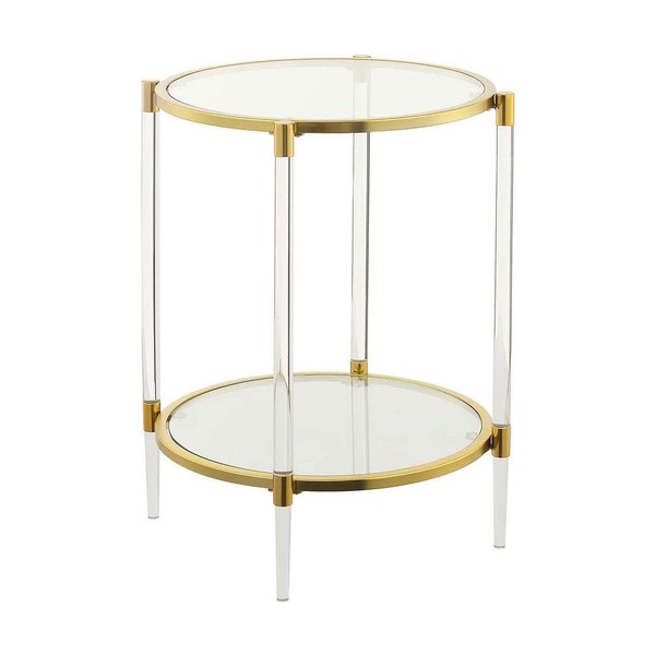 Convenience Concepts Royal Crest 2 Tier Acrylic Glass End Table, Glass/Gold