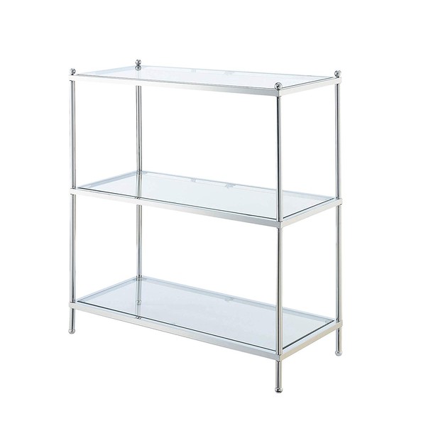 Convenience Concepts Royal Crest 3 Tier Bookcase, Chrome / Glass