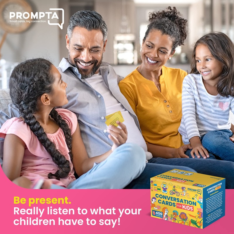Check out our other conversation starters under the Prompta brand. We have questions for grandkids to ask their grandparents, questions for friends, questions for couples, and conversation games for road trips kids and adults alike can enjoy. All are great options for connecting with your loved ones and letting them know you care about them.