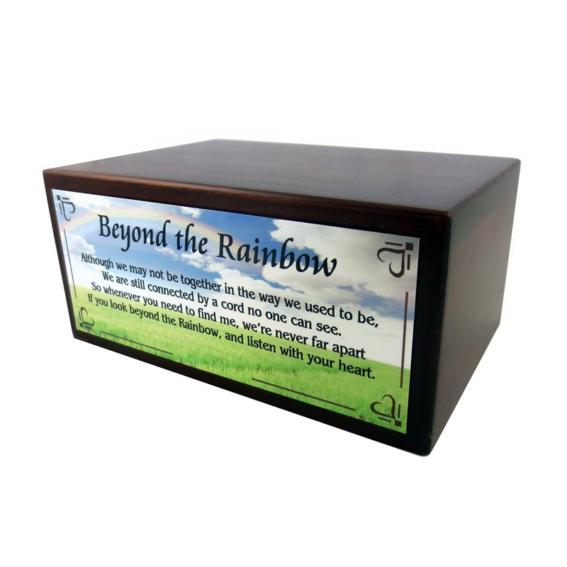 Conversation Concepts Beautiful Paulownia Small Wooden Urn with Cairn Terrier Brindle Figurine & Personalized Poem Beyond The Rainbow