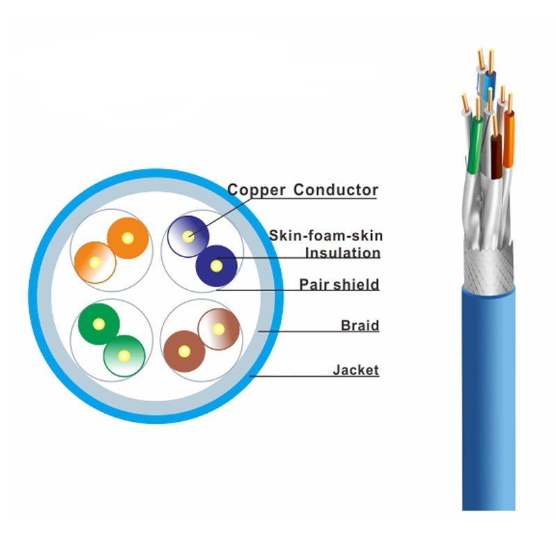 - Type: Shielded Foiled Twisted Pair (S/FTP) Category 7 Ethernet cable.