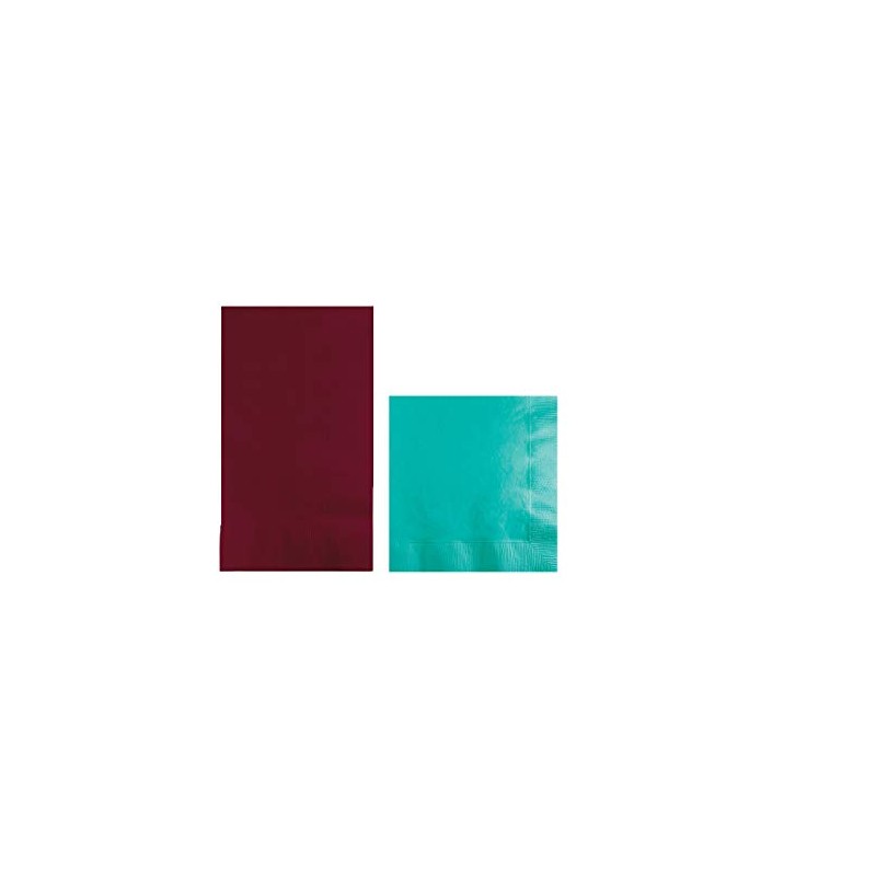 Converting Paper Bulk Party Napkin Bundle, 100 Burgundy Dinner and 200 Teal G...