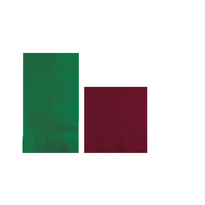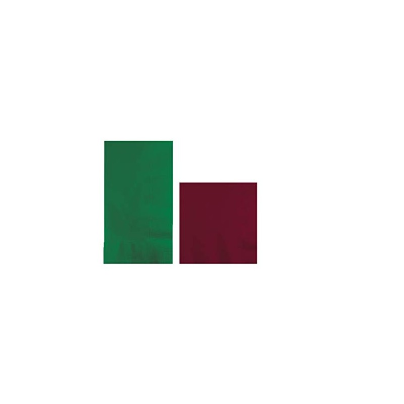 Converting Paper Bulk Party Napkin Bundle, 100 Emerald Green Dinner and 200 Burgundy Beverage/Cocktail Paper Napkins, Box of 300 Napkins