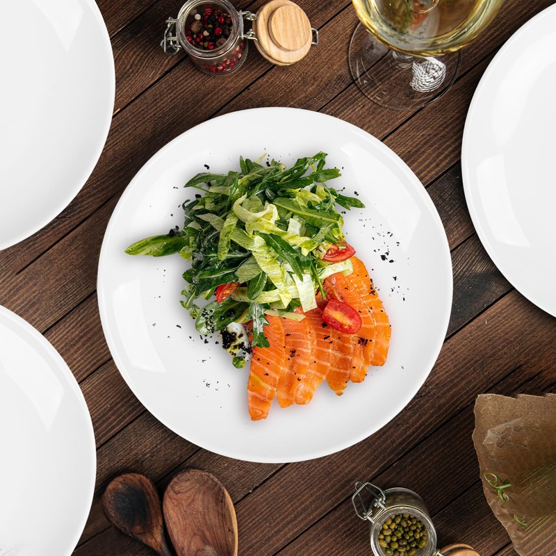 - 8-Piece Set of White Melamine Plates: This set includes 8 melamine dinnerware plates perfect for serving anything from appetizers to main courses. Ideal for indoor or outdoor use, these shatterproof melamine plates add elegance to any meal