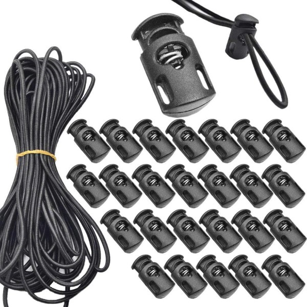 - Color: 01-black 25pcs Cord Locks+ 10 Meter Elastic Cord