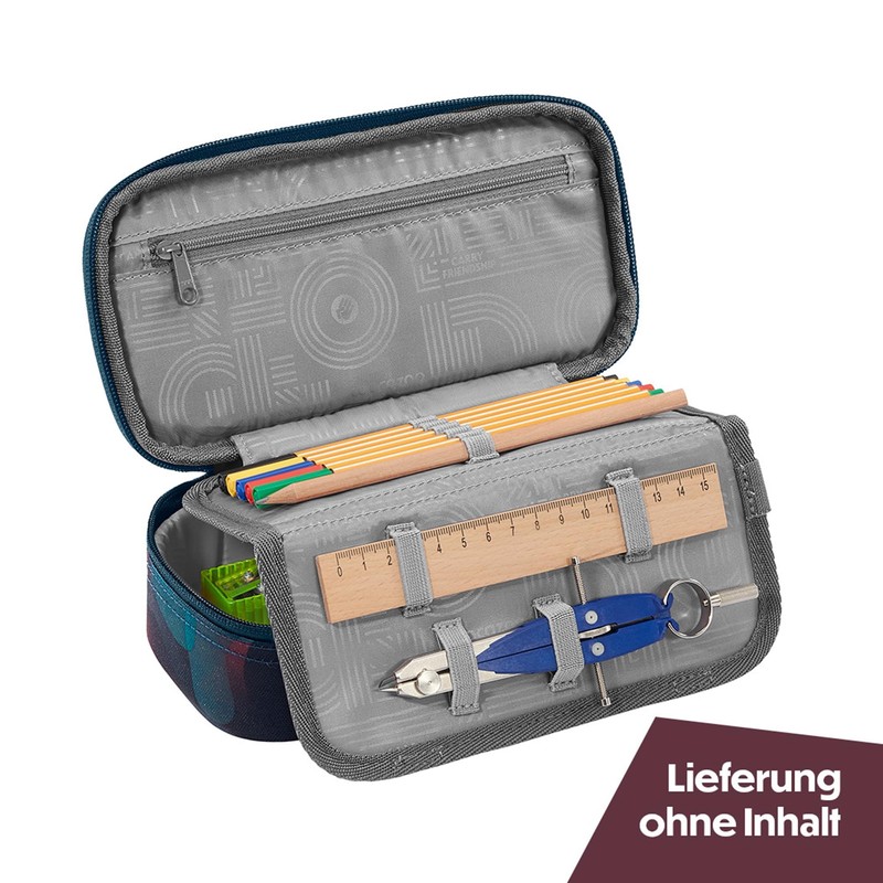 - Storage space – the case offers plenty of space for all pens. Own compartments for timetable, ruler, compass and set square ensure that everything is quickly at hand.