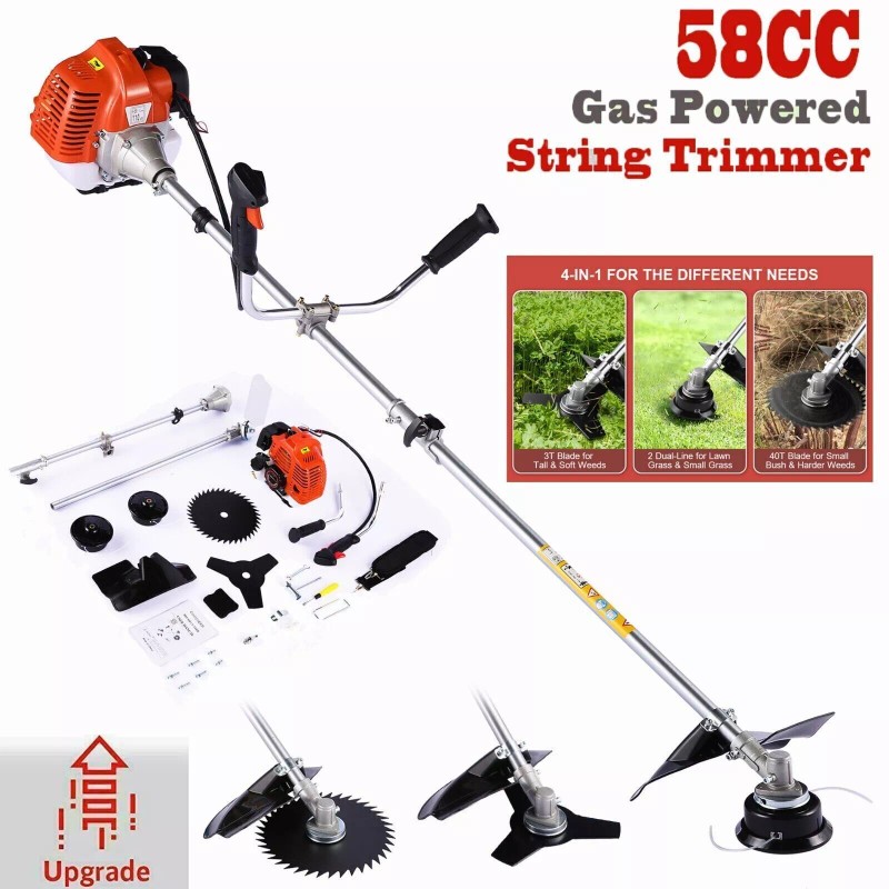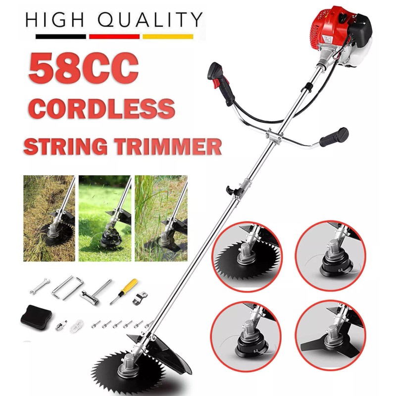 - Powerful Engine: 58cc gas weeding trimmer provides greater power to give you control and make easy work of tough trimming works. Gnerally used for trimming areas of overgrowth after mowing and edging along borders, sidewalks and flower beds.