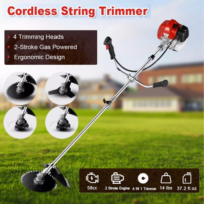 COOCHEER 58CC 4-in-1 Gas String Trimmer Yard Brush Cutter Straight Shaft Grass Eater :) - 2 # 4 IN 1 - 58CC Red