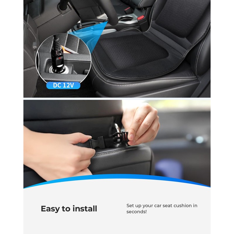 - [CUSTOMER NOTICE] The car seat cushion doesn’t blow cold air but uses natural airflow to keep you from sweating. It works best in a car with the air conditioning on, as the airflow is influenced by the surrounding temperature. Clothing or towels can obstruct the cushion’s airflow, leading to a sensation of only vibration and not the intended cooling effect.