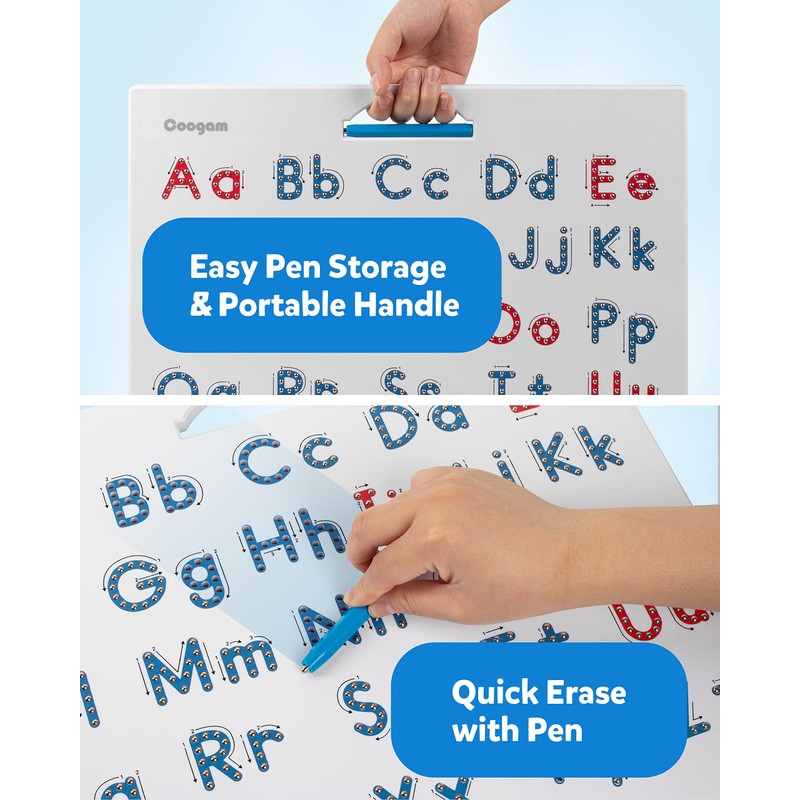 - Magnetic ABC Tablet: Learn letters visually with Coogam magnetic alphabet tracing board! Feature large font, heavy-duty made, the writing pad in compact size comes with both uppercase and lowercase letters in one without having to has two separate boards, with a magnet stylus for tracing.