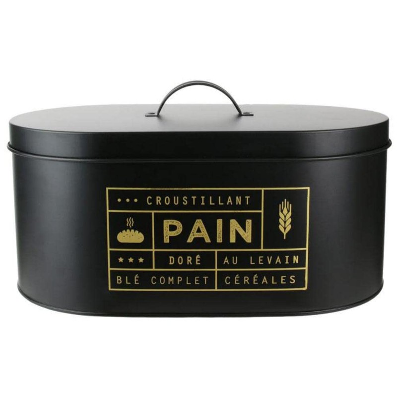 - Give your daily bread a great place in your kitchen. Beautiful matte black box with lid and gold-coloured illustrations. Dimensions: 34.5 cm x 20 cm x 18 cm. Modern and functional design. Reliable range. The product combines tradition and innovation product of excellent quality made for enthusiasts and professionals. Great gift idea for enthusiasts