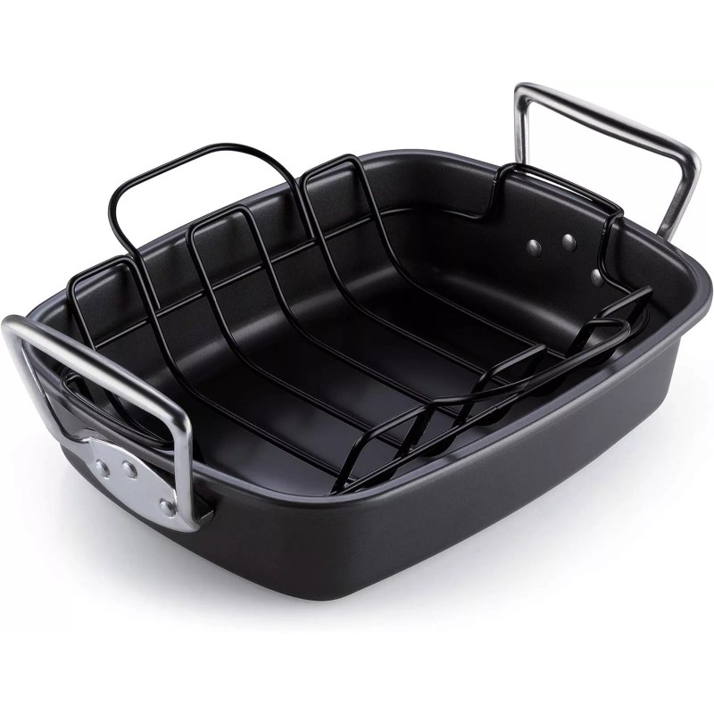 - LARGE ROASTING PAN WITH RACK : 17 inch x 13 inch Nonstick Oven Roaster with Rack . enough to hold even the biggest birds.