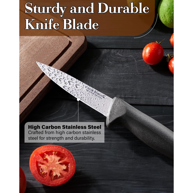- PARING KNIFE SET OF 4: 4 Pieces Paring Knives Set including 5-inch Utility Knife, 3.5-inch Paring Knife, 3-inch Vegetable Knife, 3-inch Peeling Knife.