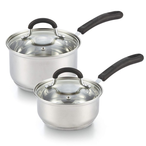 Cook N Home Saucepan Set Sauce Pot With Lid 1QT and 2QT Stainless Steel, Stay Cool Handle, silver