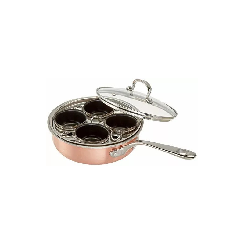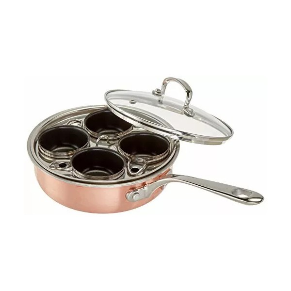 COOK PRO New 4 Cup Stainless Steel Tri-Ply Professional Egg Poacher W/Nonstick Egg Cups