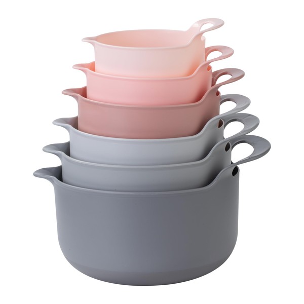 COOK WITH COLOR Nesting Plastic Mixing Bowl Set with Pour Spouts and Handles, Pink, 6 Piece Non-Slip