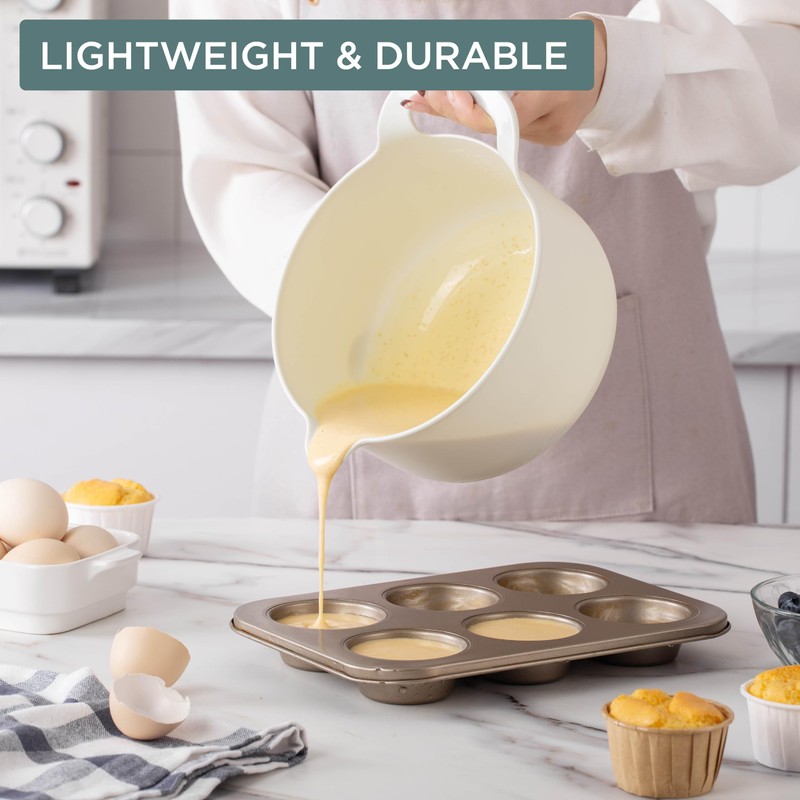 COOK WITH COLOR Nesting Plastic Mixing Bowl Set with Pour Spouts and Handles, Sage, 6 Piece Non-Slip
