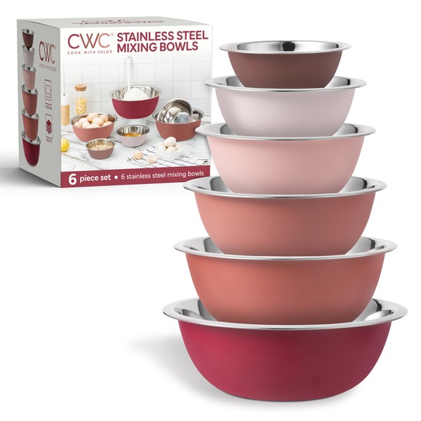 COOK WITH COLOR Stainless Steel Mixing Bowls Set - Nesting Bowls, 6 Pieces, Rose