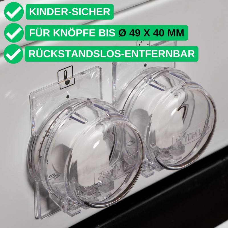 - Stove button protection with transparent special adhesive: this version of stove button baby fuse has transparent adhesive pads that stick firmly and securely to smooth surfaces.