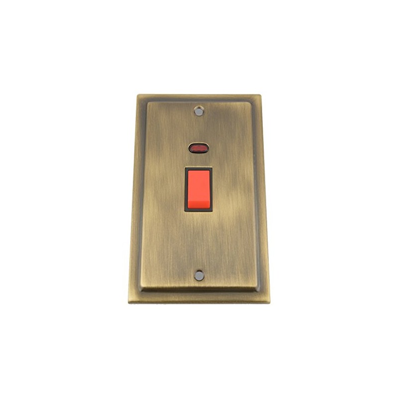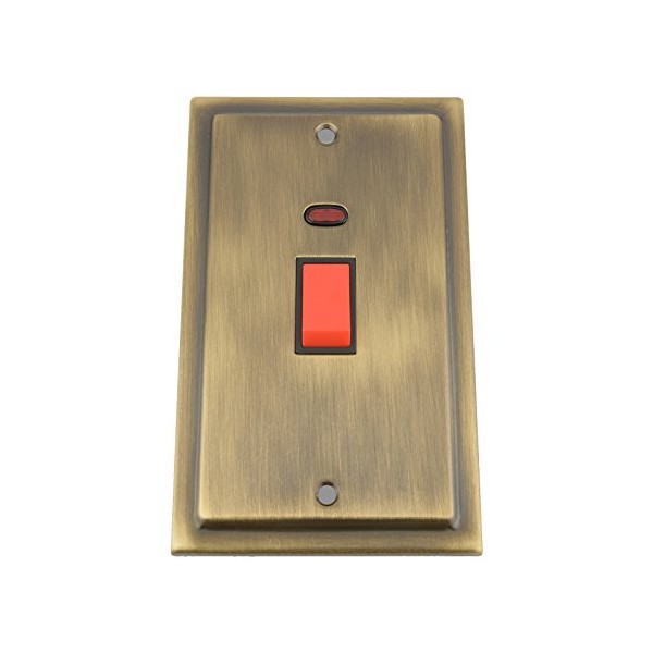 Cooker Switch w/Neon Indicator 45 Amp - Tall Plate - Victorian - Antique Brass