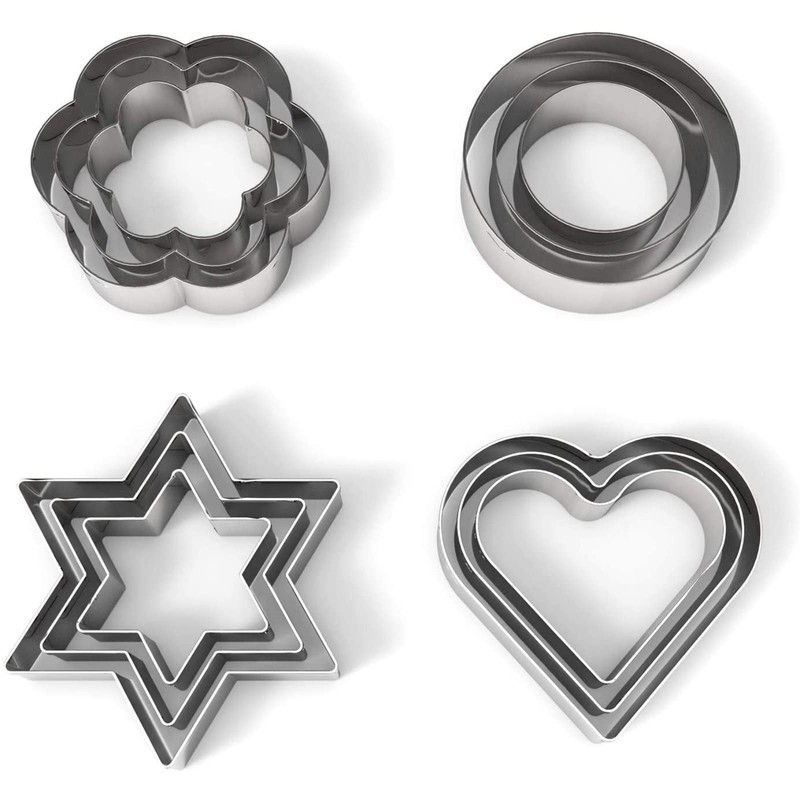 Cookie Cutters Pastry Cutters, 12 Pcs Metal Cookie Cutters Heart Star Circle Flower Shaped Mould