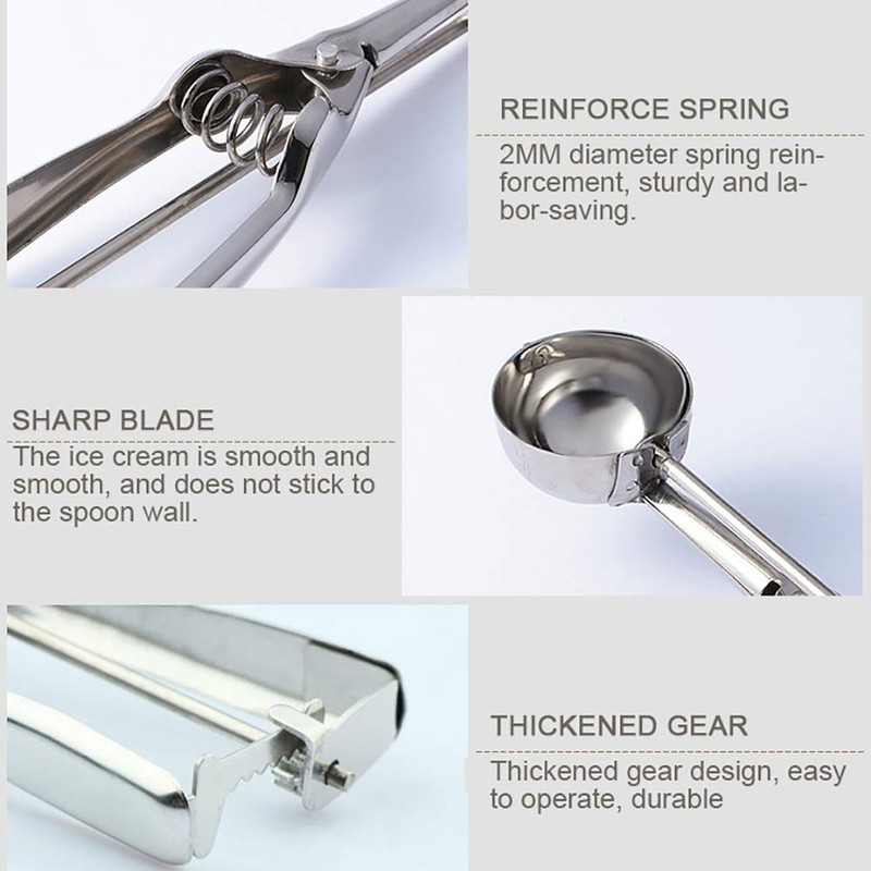 - 【3 DIFFERENT SIZES】The ice cream scoop set includes small size (scoop diameter: 1.6 inch/4 cm), medium size (scoop diameter: 2 inch/5 cm), large size (scoop diameter: 2.4 inch/6 cm). We can use different size scooper for large or small ice-cream, sorbet, fruit, meatballs, cookies, cupcakes, muffins, a great versatile kitchen tool.