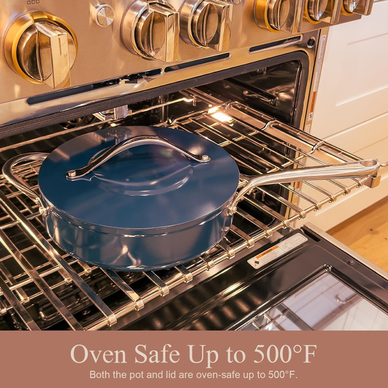 - SUITABLE FOR ALL STOVETOPS - Featuring a high magnetic conductive stainless-steel base, this cookware ensures 50% better thermal conductivity and even heat distribution. Compatible with all stovetops, including induction, and oven safe up to 500°F.
