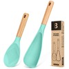 Cooking Spoon and Rice Scooper for Nonstick Cookwares, Great for Cooking and Serving Durable BPA-Free Matte Silicone, Wood Handle Spoon for Mixing, Scoop, and Scrape (GREEN)