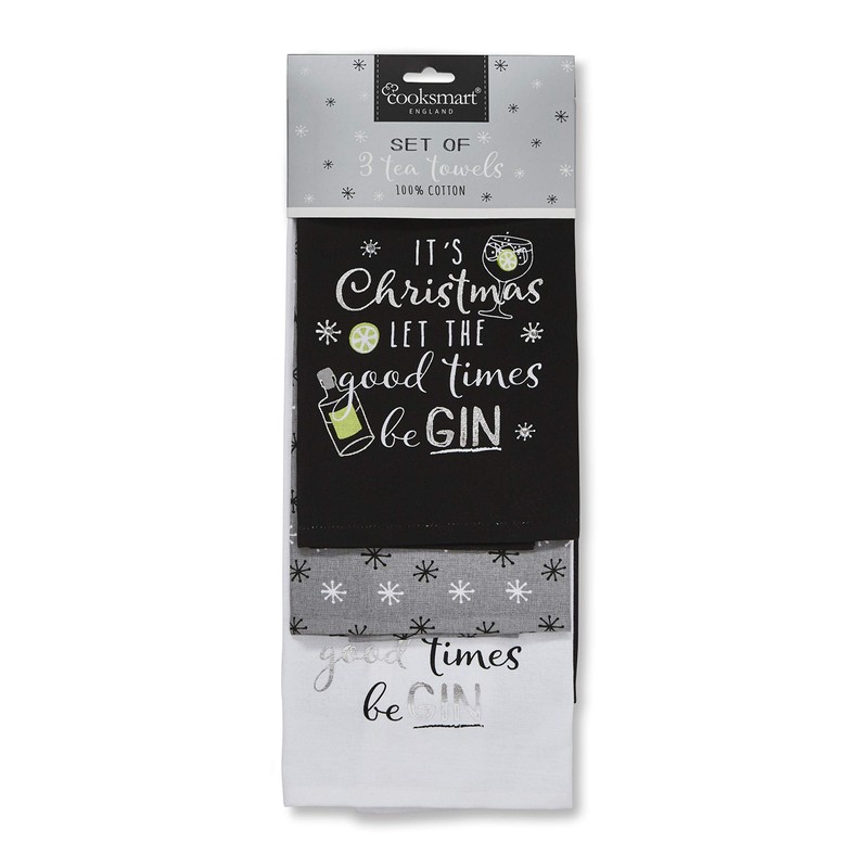 Cooksmart Let The Good Times Be Gin Tea Towels 3pk