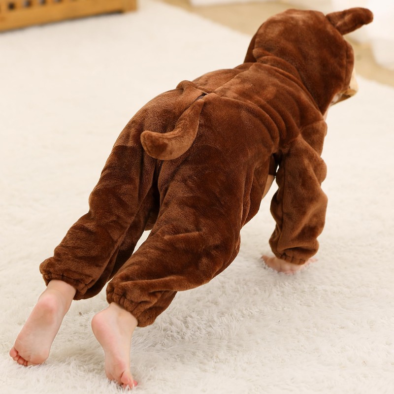 COOKY.D Baby Animal Hooded Zipper Jumpsuit Newborn Boys Girls Flannel Playsuits Toddler Outfits Outerwear,Dark Brown 24-30 Months