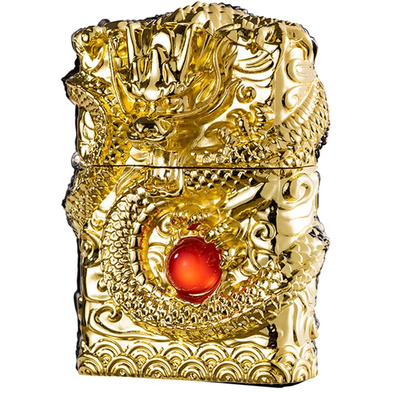 Cool Lighters, Windproof Carving Dragon Antique Lighter, Reusable Kerosene Grinding Wheel Lighter for Collection, Decorative, Gift, Present (Without Fuel) (Gold)