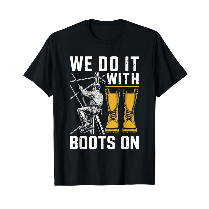 • Electrician men and women design with a hilarious lineman quote, We Do It With Boots On.