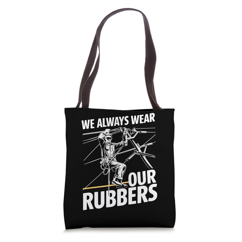 - Electrician men and women design with a hilarious lineman saying: We Always Wear Our Rubbers.