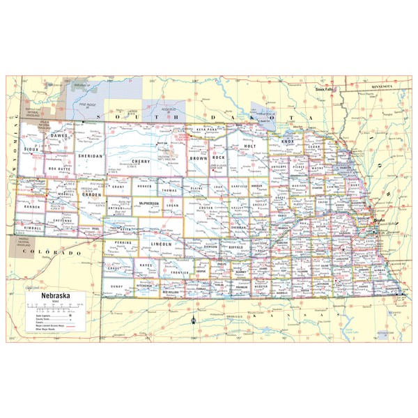 Cool Owl Maps Nebraska State Wall Map Poster Rolled 36"Wx24"H (laminated)