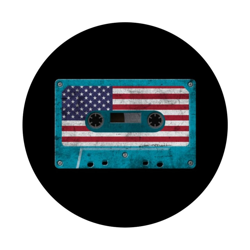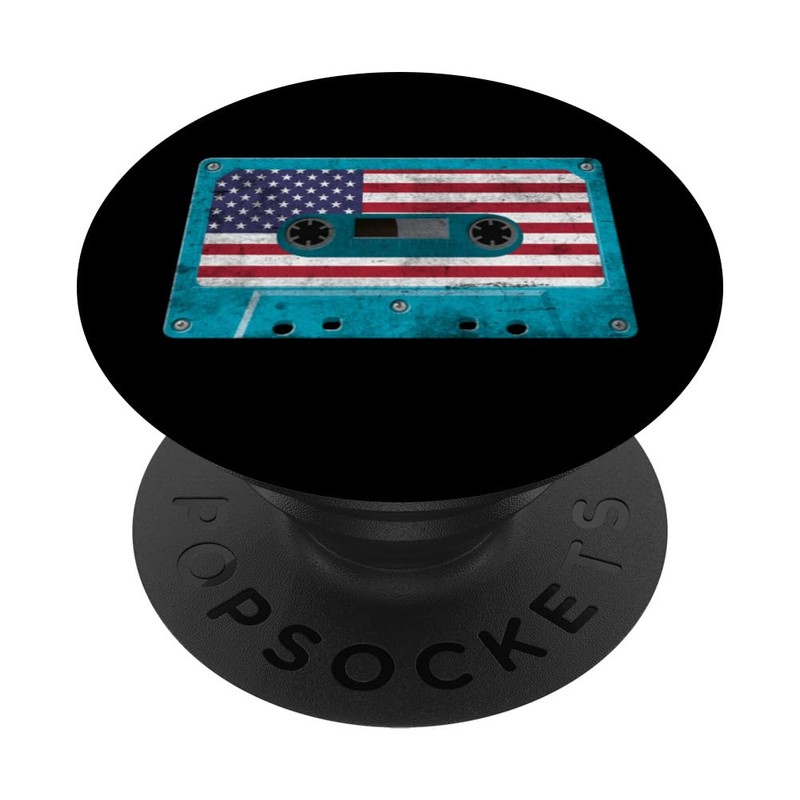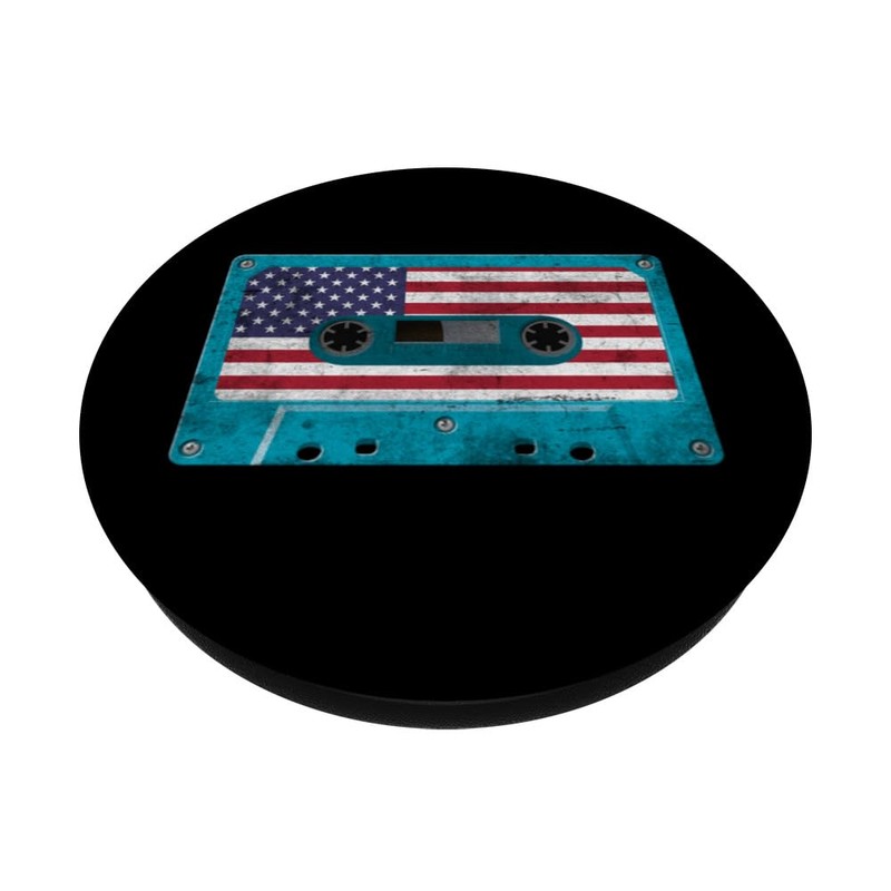 Cool Retro Back To 80's 90's Mix Tape Music with USA Flag PopSockets mit austauschbarem PopGrip