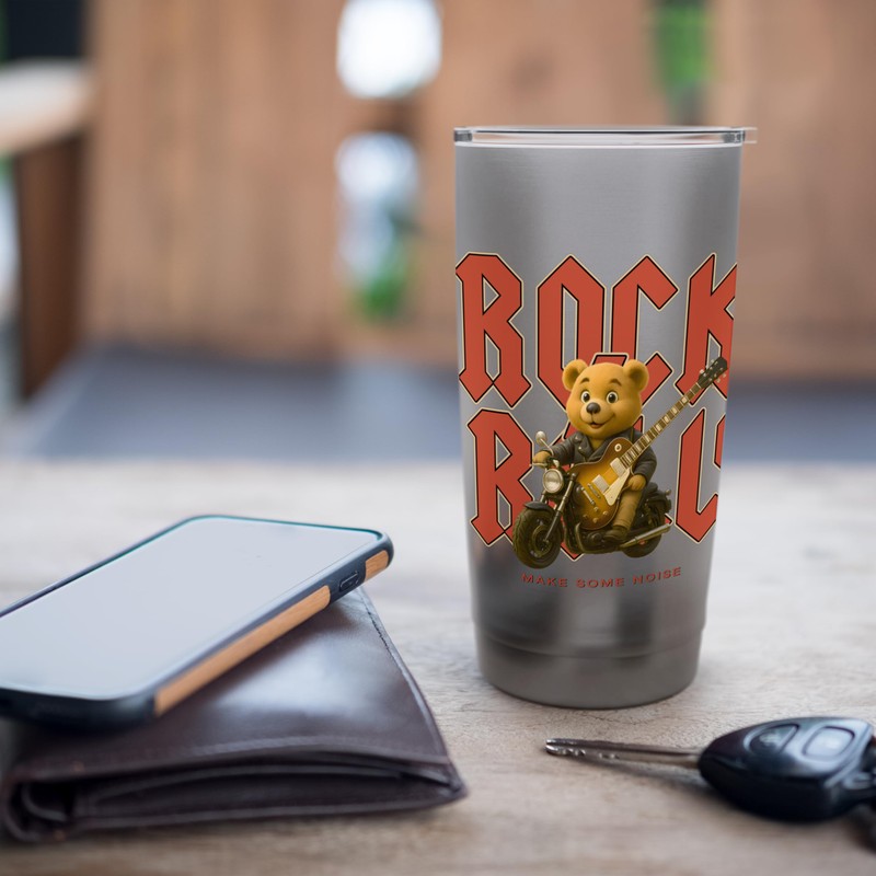 Cool Rock N 'Roll Teddy Bear, I Love Rock Music, Rock & Roll Stainless Steel Insulated Tumbler