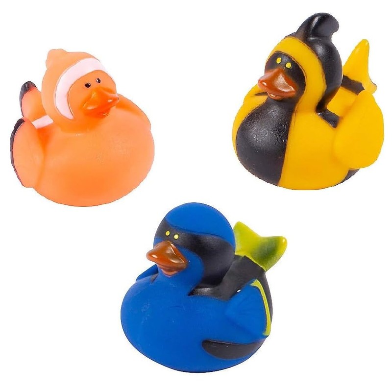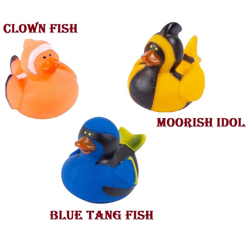 Cool Rubber Ducks (2") Standard Size. (12 Pack) Cute Duck Bath Tub Pool Toys. (Fish Rubber Duckies)