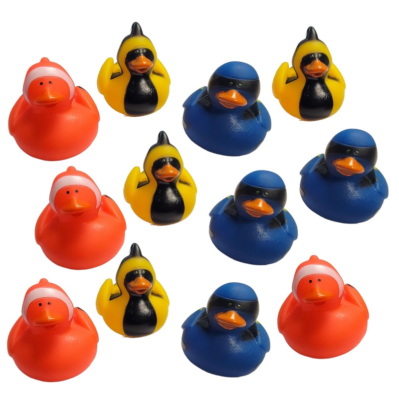 - 12 Duckies. 2". Please note: Ducks do not float. For Ages 3+. Plastic. Safe and Non-Toxic. ⭐⭐⭐⭐⭐