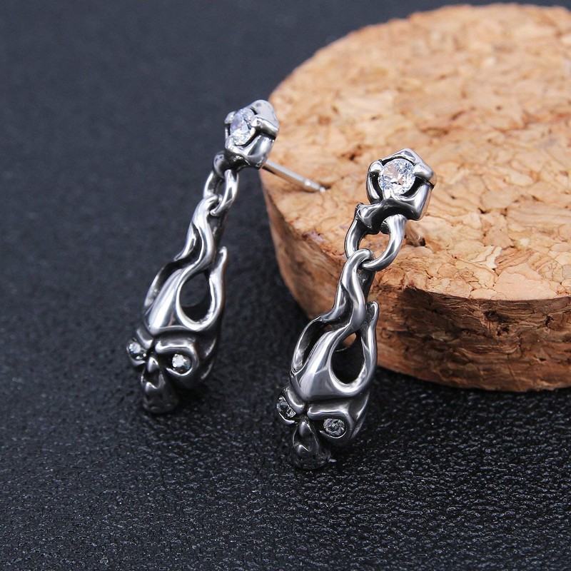 Cool Skull Devil Bone Drop Earring Stud Earrings Stainless Steel Crystal Dangle Earrings for Sensitive Ear Men Boys, Metal