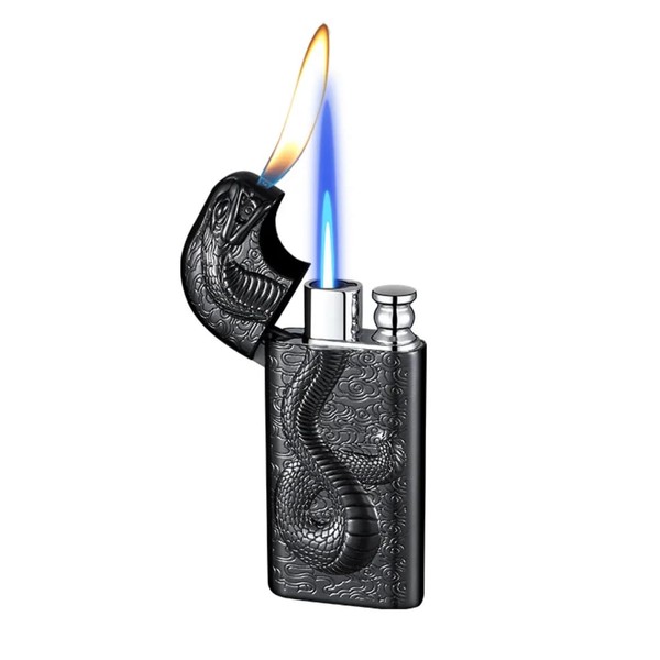 Cool Snake Lighter, Serpent Lighter, Dual Flame Lighter, Double Flame, Lighters for Men, Torch Jet Flame Refillable (Black)