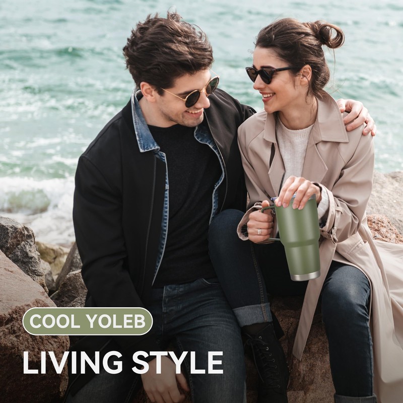 Cool Yoleb 30 oz Tumbler with Handle and Lid, Stainless Steel Tumblers Bulk Double Wall Vacuum Insulated Travel Mug Leak Proof Cup Keep Drinks Cold and Hot Army Green, 4 Pack