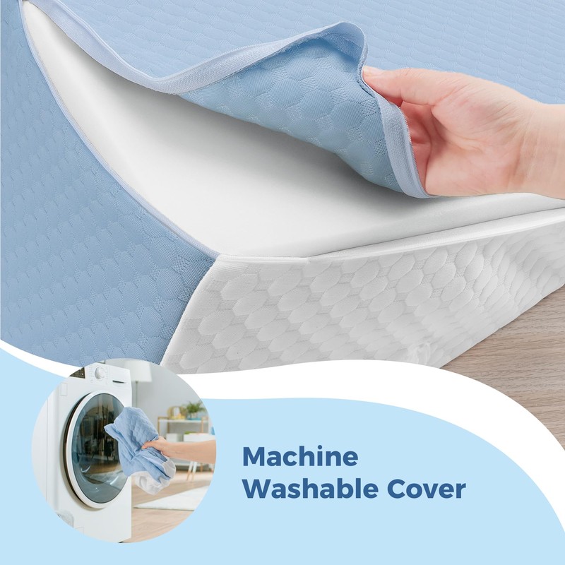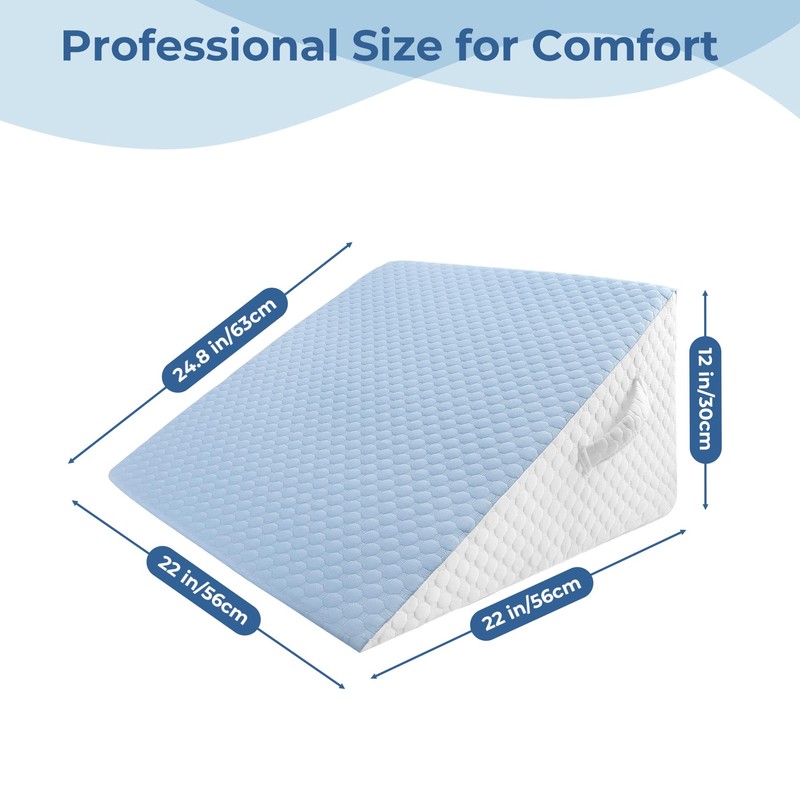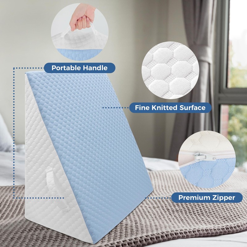 COOLBEBE Bed Wedge Pillow for Sleeping,12Inch Elevated Wedge Pillow for Sleep Apnea, Foam Wedge Triangle Pillow for Acid Reflux, Gerd and Snoring - Breathable Air Layer Washable Cover(Blue)