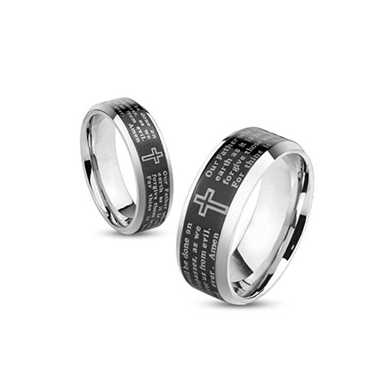 Coolbodyart Stainless Steel Ring Silver Black 6/8mm Wide Lord's Prayer Amen Lord's Prayer Ring Sizes Available 47(15)-69(22) black