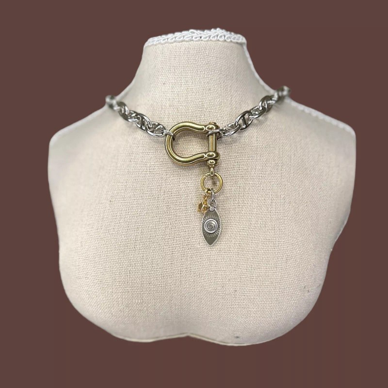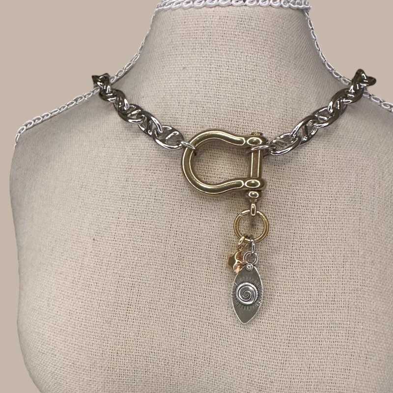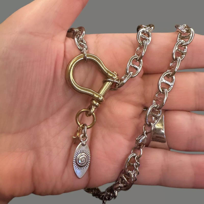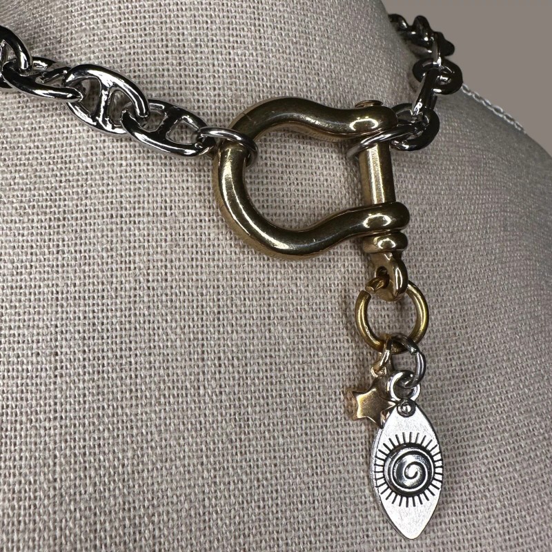 CoolCalmCollected Chunky Mixed Metal Charm Necklace Edgy Modern ShackleCarabin