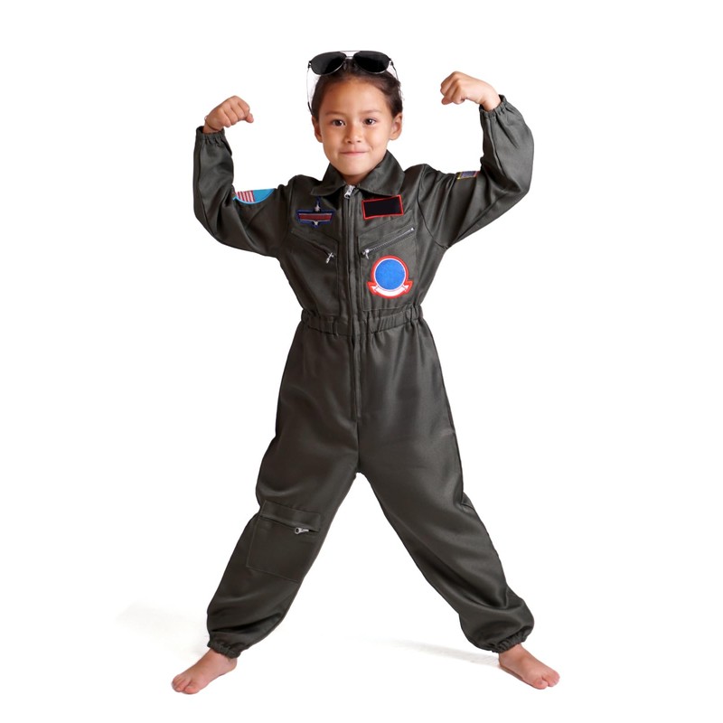CoolChange Children's Aviator Combi Fighter Pilot Overall Children's Costume Olive Green Size: 120