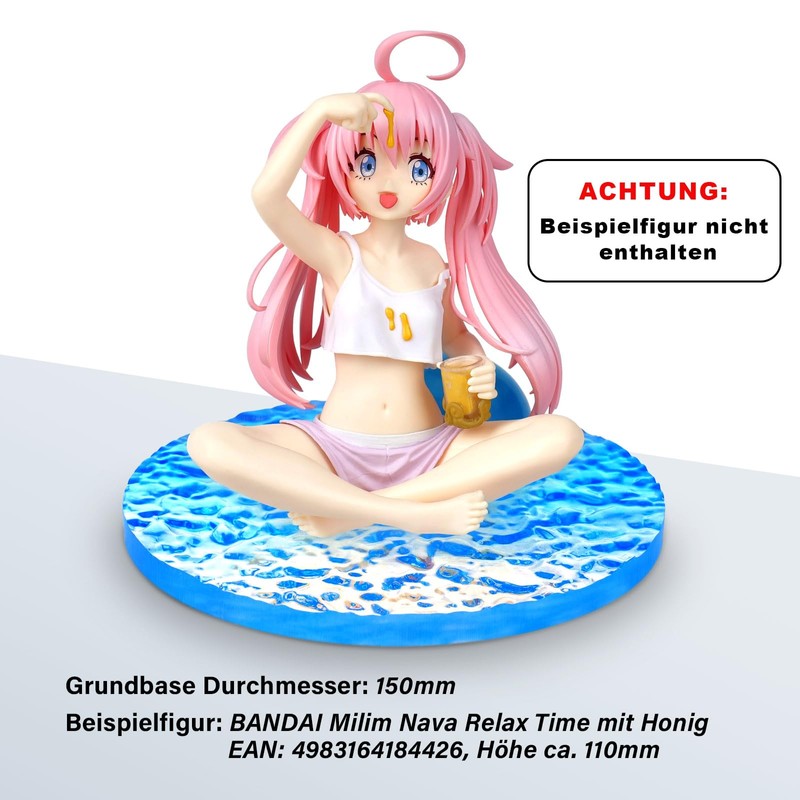 This base set gives your smaller collectible figures a stylish stage. The round display surface with realistic wave structure brings a fresh, dynamic atmosphere to your shelf or display case.