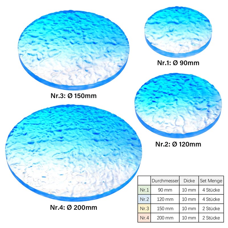 CoolChange Figure Base Set Round | 4 Pieces | Water Look Display Diameter 90 mm | Resin Base for Anime & Action Figures