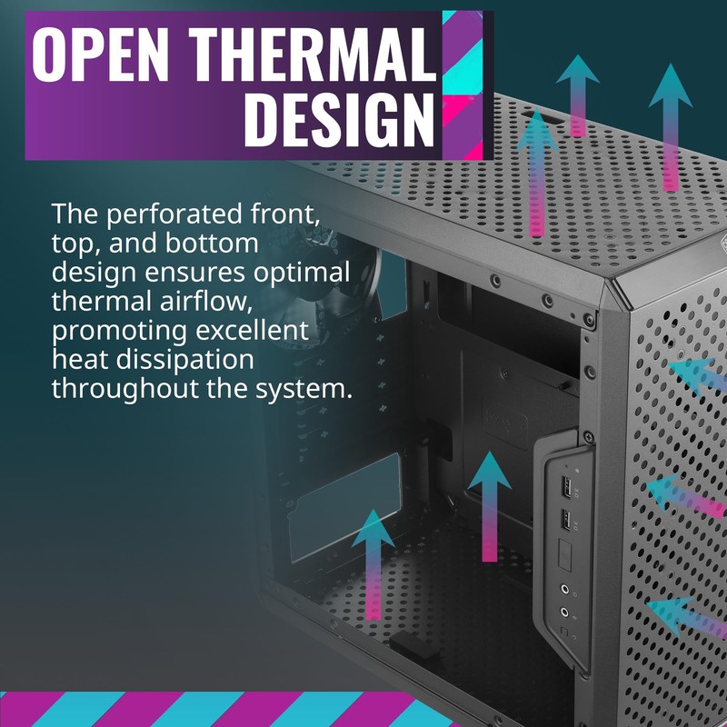 - Front magnetic design dust filter with open perforated front, top and bottom for high air performance