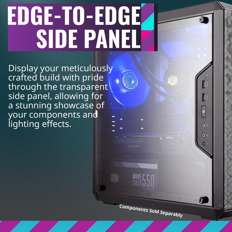 - Edge to edge acrylic transparent side panel offers a full view inside